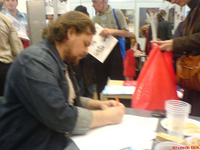 Вчера автор просидел у нас на стенде 3 часа, подписывал свое творение (фото 1). Шли в основном молоденькие девушки...