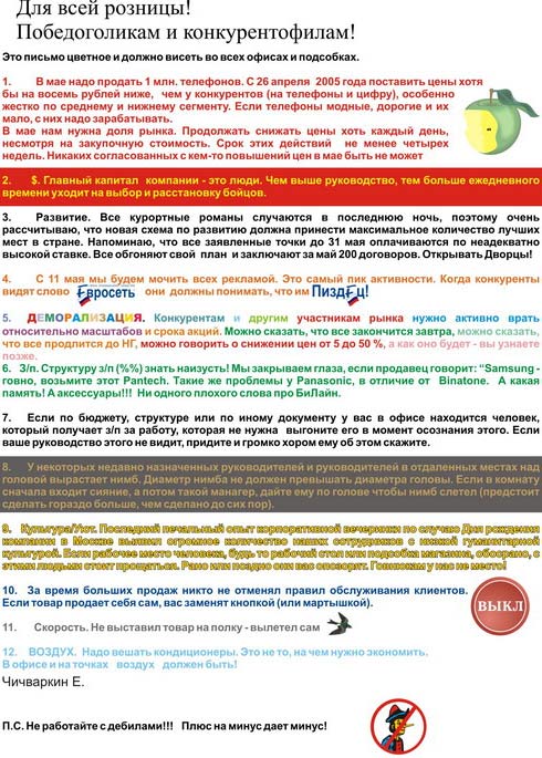 Чичваркин - молодец. Обязательно распечатаю листовку и при следующей поездке в Суздаль зайду в магазин, о котором там говориться, пообщаюсь с людьми...