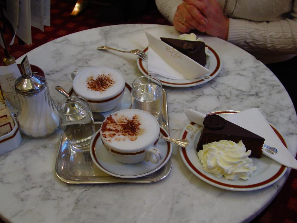 Еда. Ну, на четверочку, до Праги явно не дотягивает... ни шницель, ни штрудель... А вот об одной пистче я расскажу подробно, бо потрясло меня сильно. Итак, знаменитый отель Захер, ресторан Захер и торт, разумеется, тоже - Захер. Это - знаменитый торт в знаменитом ресторане, там постоянно очереди стоят.