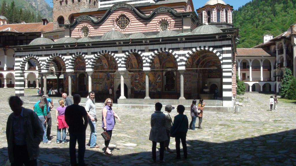 По дороге мы посетили Рильскийц монастырь - один из древнейших монастырей. Кстати, название "Рильский" знакомо мне с детства, были джинсы такие "Рилы". Название произошло от одного из нескольких горных хребтов, кстати, один из них носит тоже знакомое с детства название - Родопи.