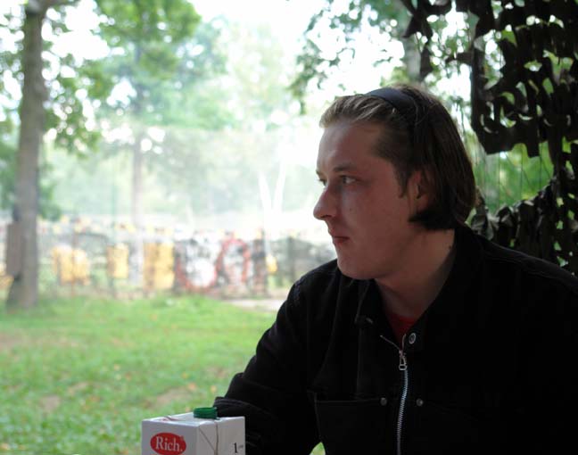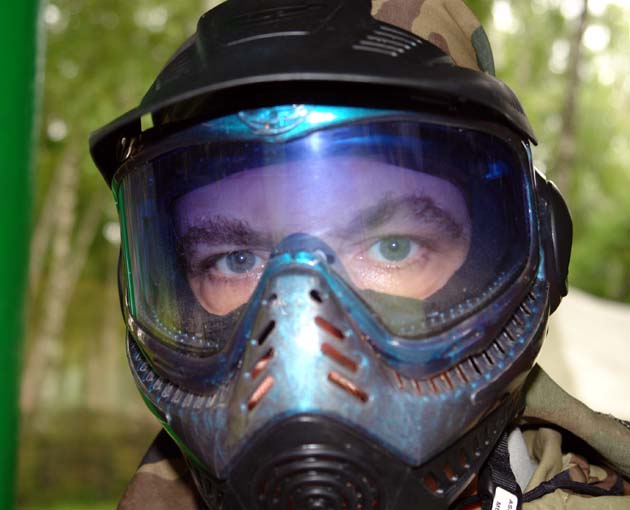 3. В первой игре нас отвели на новую площадку, которая представляла собой узкий прямоугольник шириной десять метров, с одной стороны которого находился форт, перекрывающий всю ширину площадки. Игроки (вначале нас было семь) разделились так: Я и Сережа Корнух защищаем форт, пятеро остальных на нас нападают. Нападающих отвели в другой конец площадки и велели ждать инстректора и команды к началу боя. Инструктор повел нас с Сережей на Форт, с нами пошел военный корреспондент Алексей Карпович, дабы запечатлеть нечеловеческие условия, в которых нам предстояло обороняться. Инструктор стал объяснять нам правила игры. В это время где-то на соседней площадке прозвучал свисток. Пятеро наших балбесов, опьяненных численным преимуществом (смешные ребята) осторожно начали пробираться к форту (мы этого не видели, поскольку слушали инструктаж). Осторожно пробирались не все: безбашенный Максим (Очевидец) побежал в атаку, оббежал форт с фланга и увидев нашу группу ( двое "гражданских" Алексей и инструктор были даже без шлемов) начал радостно садить в меня очередями, несмотря на мои вежливые увещевания типа "что ж ты, су*а, делаешь?). Извиняет только то, что он в меня не попал ни разу.