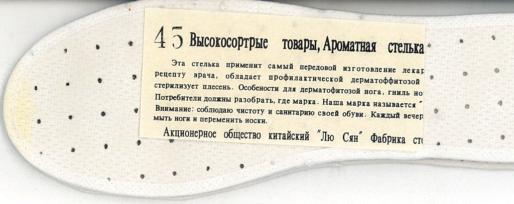 Я года два назад, как увидел упаковку китайских стелек, где-то на развале, так сразу и купил поддавшись на слоган "Нога - корень здоровья" и прочитав инструкцию про предотвращение гниль нога...
