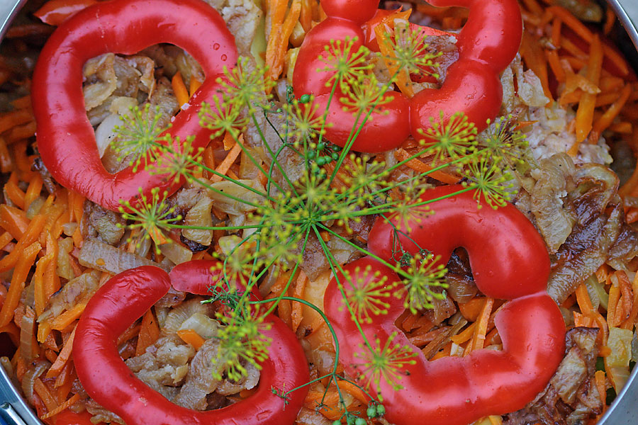 Awards Showcase Ответ: Как я провел выходные, испорченные Календарем. Кстати, по рецепту, готовя плов с изюмом, обжаренный лук (очень вкусный даже сам по себе) нужно выкинуть. Чтобы не пропадать добру, мы его (с остатками курдюка) приспособили в фаршированный перец: