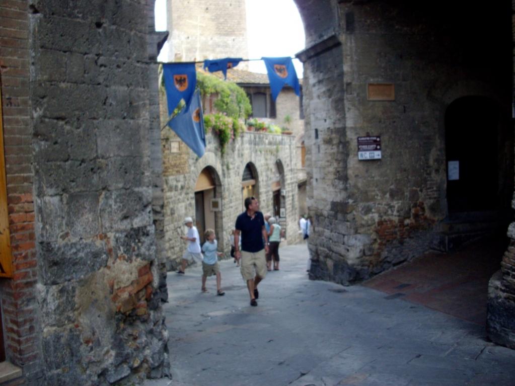 Немного пройдя дальше, я вышел на центральную площадь городка, окружённую знаменитыми башнями-близнецами. Дизайн скупой, но впечтляюще.