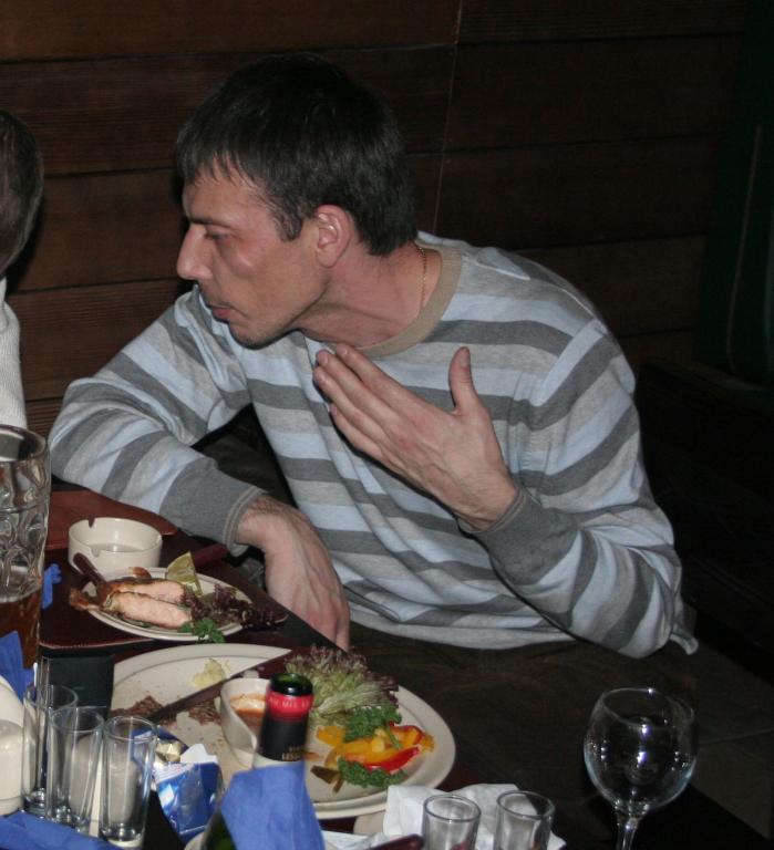 3. Девушки так отчаянно взялись за самбуку, что Андрей Федотов, глядя на них, захмелел и стал приставать ко мне с Корнухом со странными вопросами. Сначала он спросил, как зовут Врукала, я ответил, что - Вася. Он так замумукал Врукала чем-то, что Врукал через полчаса уже бодренько откликался на имя "Вася". Затем Андрей, забыв после шести лет знакомства, как зовут Птицу - спросил Корнуха и узнав, что ее зовут Ангелина, пошел к ней... мумукать. К этому времени Птица уже слабо откликалась на любое имя, что непонравилось Андрею и он стал уточнять у Корнуха. Уточнив, что на самом деле Птицу зовут Снежана, с новыми силами взялся за дело замумукивания Птицы