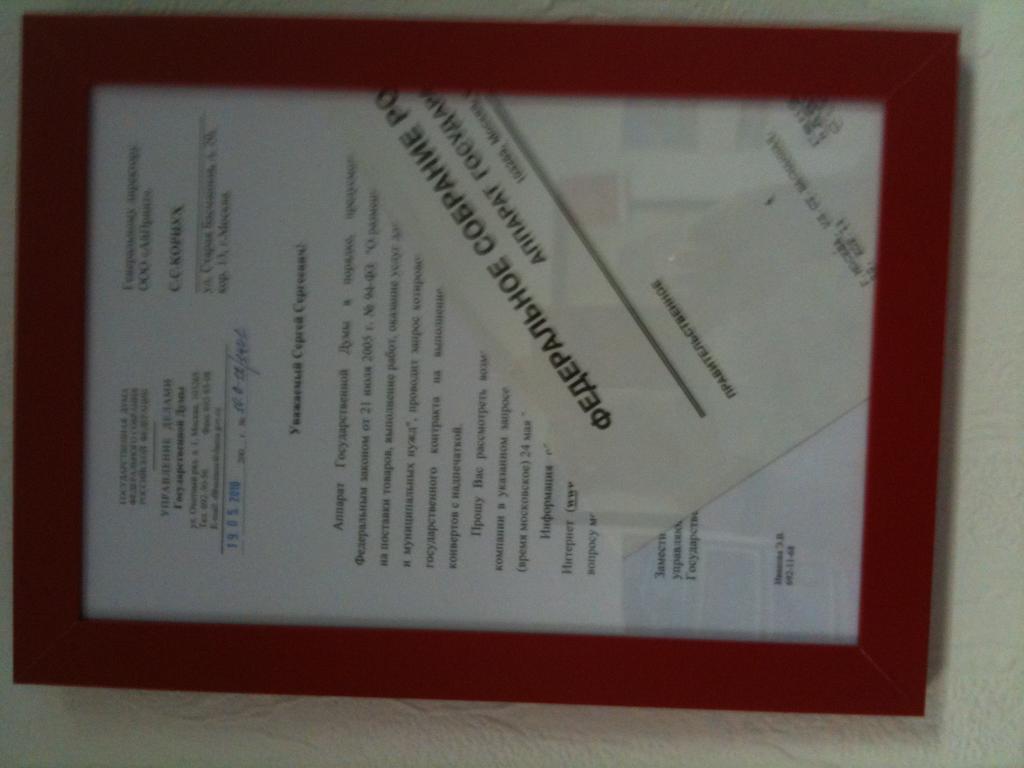 Еще один жизненный анекдот, на сей раз со мной: прихожу в Айпринт, лежит конверт "правительственное, срочно". Спрашиваю, мол чего это? Говорят, мол вчера выясняли кто директор, как проехать, факсом запрашивали схему проезда, сегодня привезли фельдегерской почтой. С дрожью в руках вскрываю, а там - это передать нельзя... Суть в том, что они меня, обращаясь по имени отчеству, приглашают поучаствовать в тендере на закупки конвертов для думы, причем указывая мне корень сайта госзакупки. Там поискав полчаса в заявках находим их конверты, понимаем что они их хотят с долгой постоплатой, по цене пустых конвертов, с хранением у нас на складе и доставкой хоть днем, хоть ночью по первому требованию неогрниченное количество раз... И еще в невыполнимый срок... Вот и думаем - а нафига? Позвонить нельзя было - мы бы им сказали, что в такие игры не играем... Зато я теперь из них сделал коллаж, повесил по-выше, что бы текст не видно было, а только было написано: "Москва, АйПринт, Корнуху С.С. ПРАВИТЕЛЬСТВЕННОЕ" и в зависимости от настроения говорю, что это меня поздравляли с днем рождения, или благодарили за вовремя сданный заказ...
