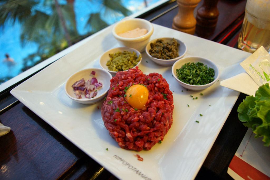 2) Тар-тар из говядины. Сырой фарш с яйцом, всякий лучек и прочее. Я сырое мясо люблю.