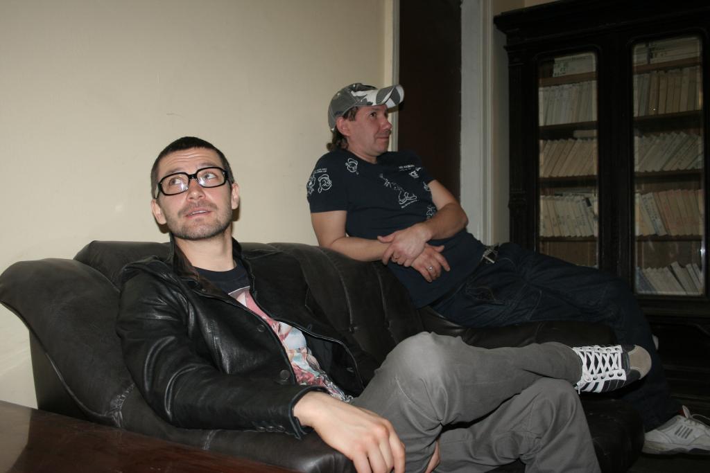 Ой, не могу! Это снято как раз в момент скучания братцев. Когда приключилась небольшая пауза и все, кто хотели уже стребовали слова и видео с Крестовских, угораздило меня им ляпнуть в тишине что-то типа "Ну, что еще с Вами сделать, ребяты?". Очкарик (опытный, видать, товарищ) тут же ответил что есть у него одно предложение... За что и получил вспышкой в глаз. Нда. Отлично получилось)))