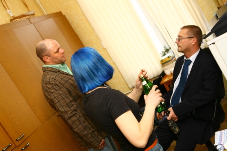 Очень долго ждали опаздунов- Павла Кашина и Сергея Белоголовцева. Наконец, приехал Кашин. И тут же попросил напиться. Был снабжен Ессентуками №17 и зафотографирован.