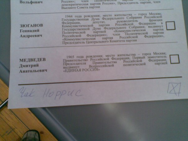 На прошедший 2-го марта выборах президента России в московском районе Зябликово за кандидата Дмитрия Медведева было отдано 93,2% избирателей, пишет газета «Коммерсантъ». Таким образом, в районе Зябликово кандидат Медведев получил поддержку, сопоставимую с оказанной кандидату в Чечне, Ингушетии, Кабардино-Балкарии и Мордовии. // «Газета.Ru»