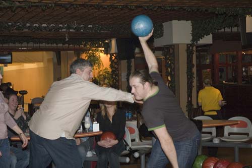 Общались, делились впечатлениями, оценивали передовые цифровые технологии и между этими делами играли в боулинг, почти профессионально...кидая шары на стол)))
