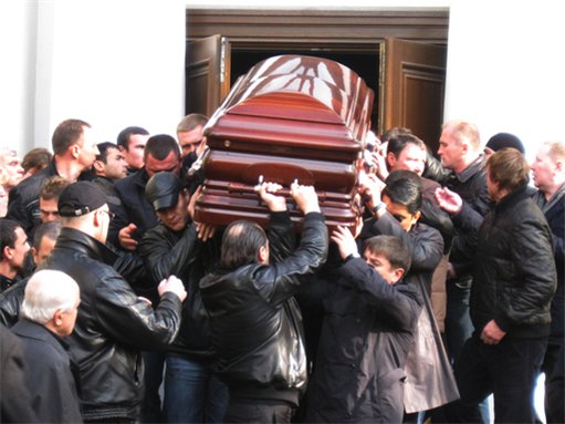 Несмотря на ограничение доступа рядовых граждан России на похороны Япончика, сценарий похоронного ритуала воров в законе хорошо известен: На грудь возлагается огромный целовальный крест. Этот специальный крест, к которому прикладываются верующие после службы и потом он кладется на перстол в алтаре и лежит на нем поверх Евангелия до следующей обедни. Согласно воровской мифологии, на Том Свете вора сразу же попытаются скрутить мелкие бесы и утащить в пекло минуя Суд. Этим крестом Вор будет отбиваться от бесов как ниндзя нунчаками. Обычно к такому кресту крепиться и цепь.