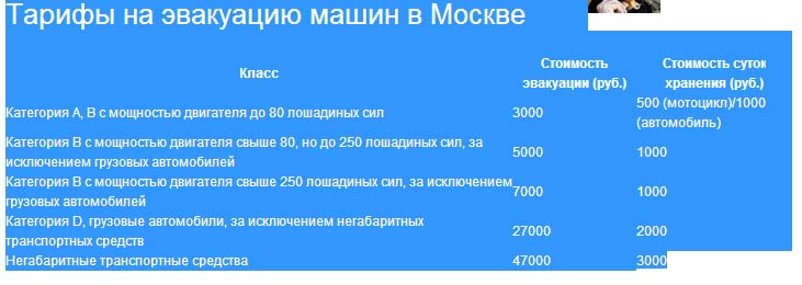 Тарифы на эвакуацию машин в Москве