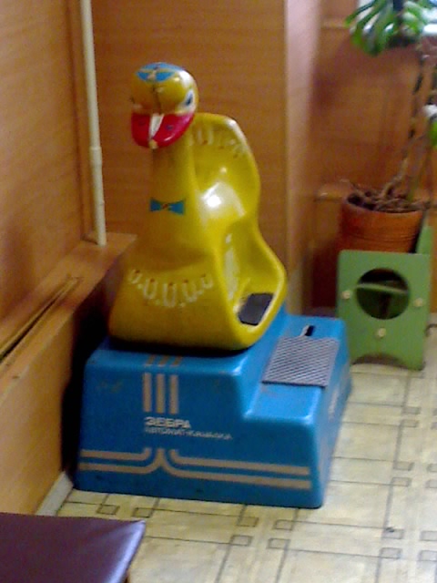 Неделю назад ходили с киндером на выставку киндранутую в Гавани, дык там наблюдали точь в точь такую конструёвину, только это был стул - на палке с колёсьями ерзала вверх-вниз сидушка и спинка (типа регулировались), а ценник был ну просто чересчургуманный - 5 Франклинов...