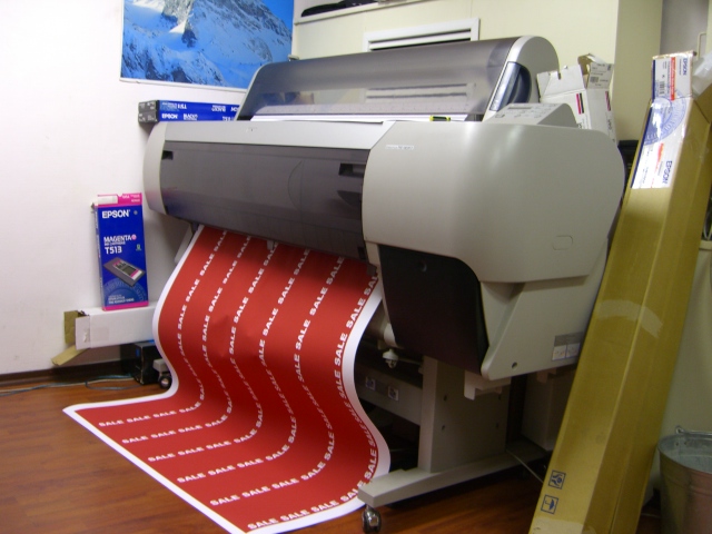 Работает Epson 10000CF, ширина печати 1.12 метра, разрешение 1440 dpi.